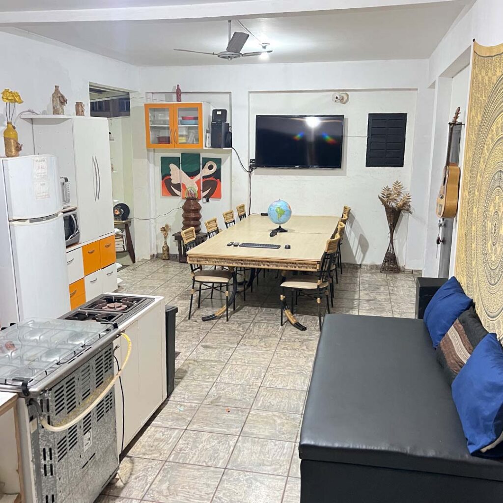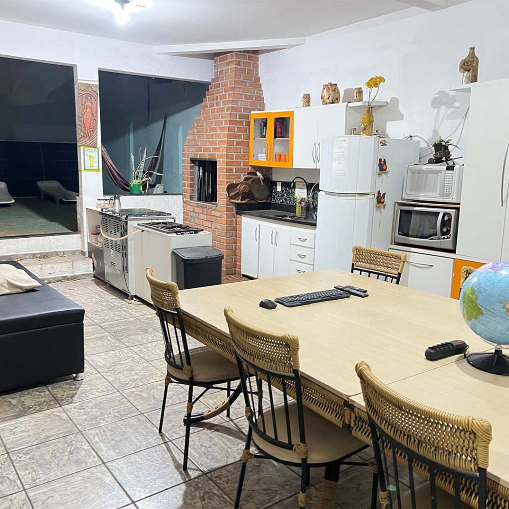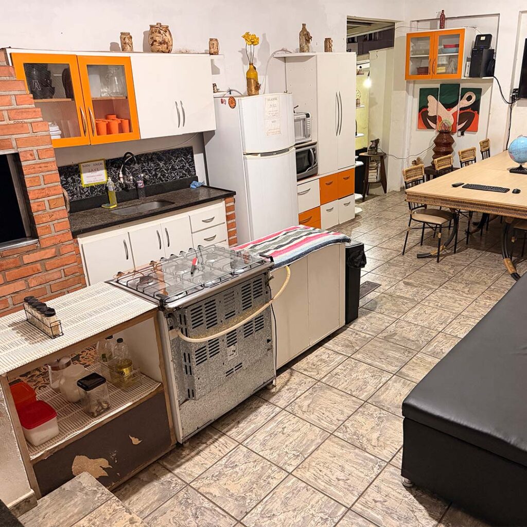 Cozinha, área de convivência, fachada e entrada.
