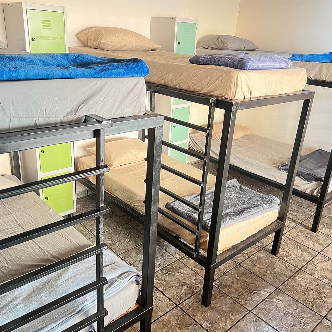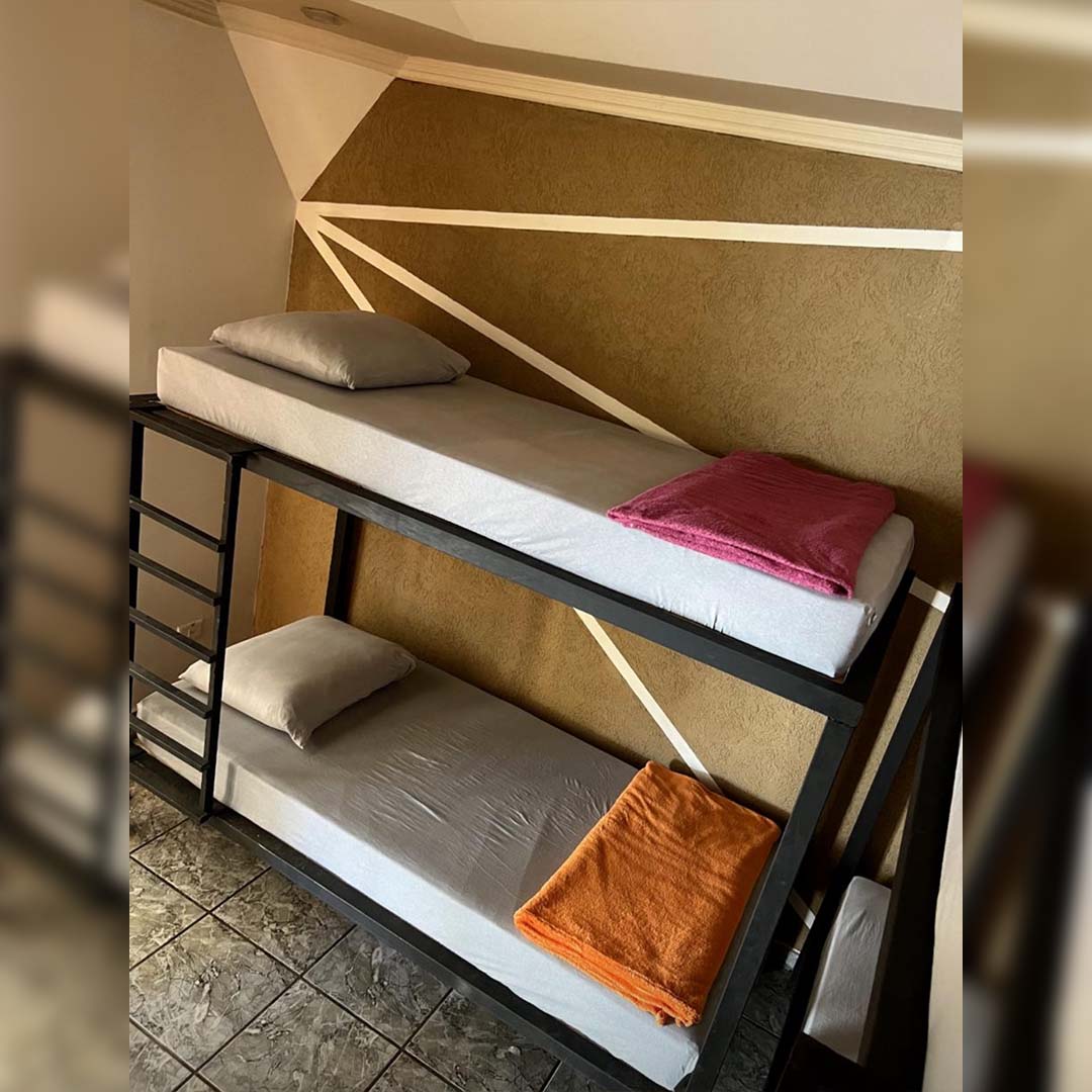 Quarto compartilhado composto por 4 beliches e com capacidade para até 8 pessoas. Tem banheiro privativo, localizado dentro do próprio quarto, ideal para quem busca uma opção econômica, confortável e com boa estrutura proporcionando praticidade e melhor aproveitamento do espaço.